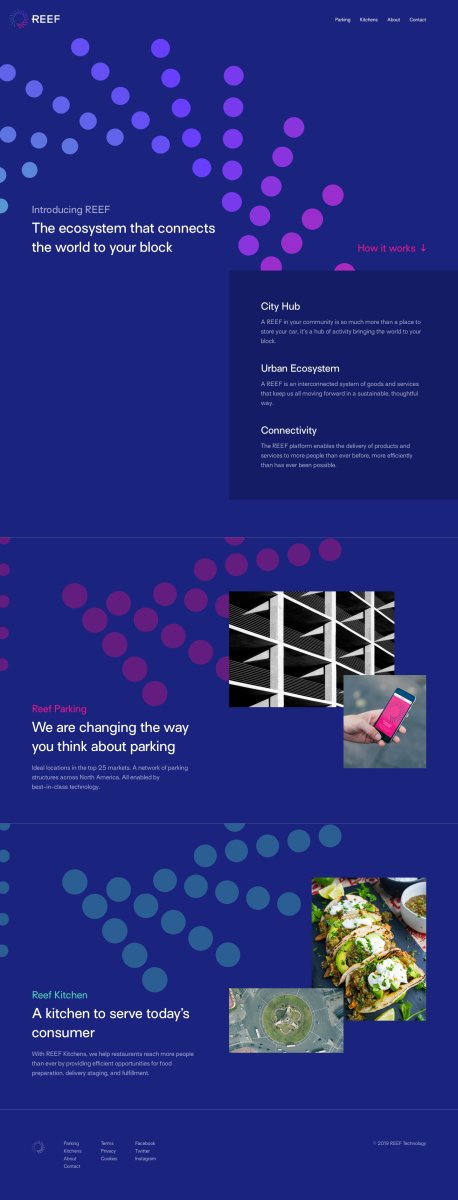 Website design and development for Miami-based startup REEF Technology, that aims to transform parking facilities into multipurpose hubs for the on-demand economy.
